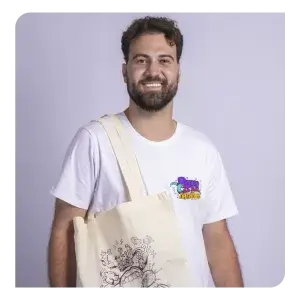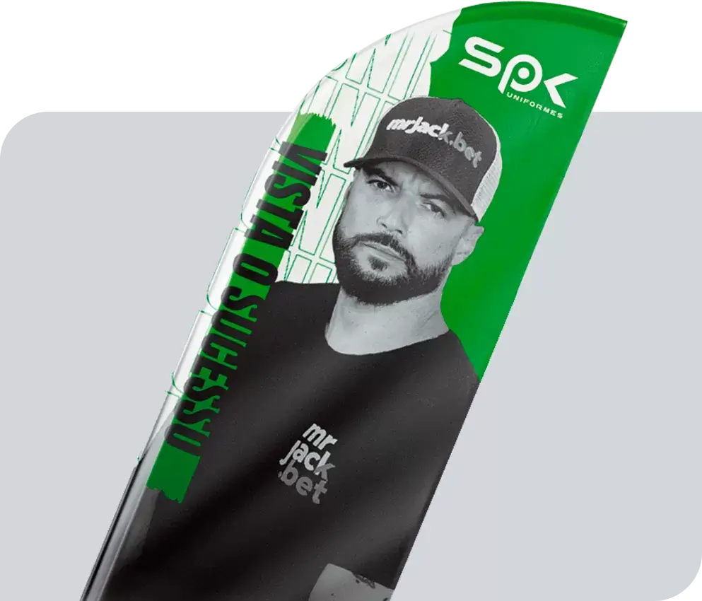 Técnica de impressão que permite a personalização completa da peça, cobrindo toda a superfície com estampas vibrantes e de alta definição.